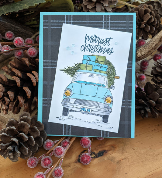 Handmade vintage car Christmas card
