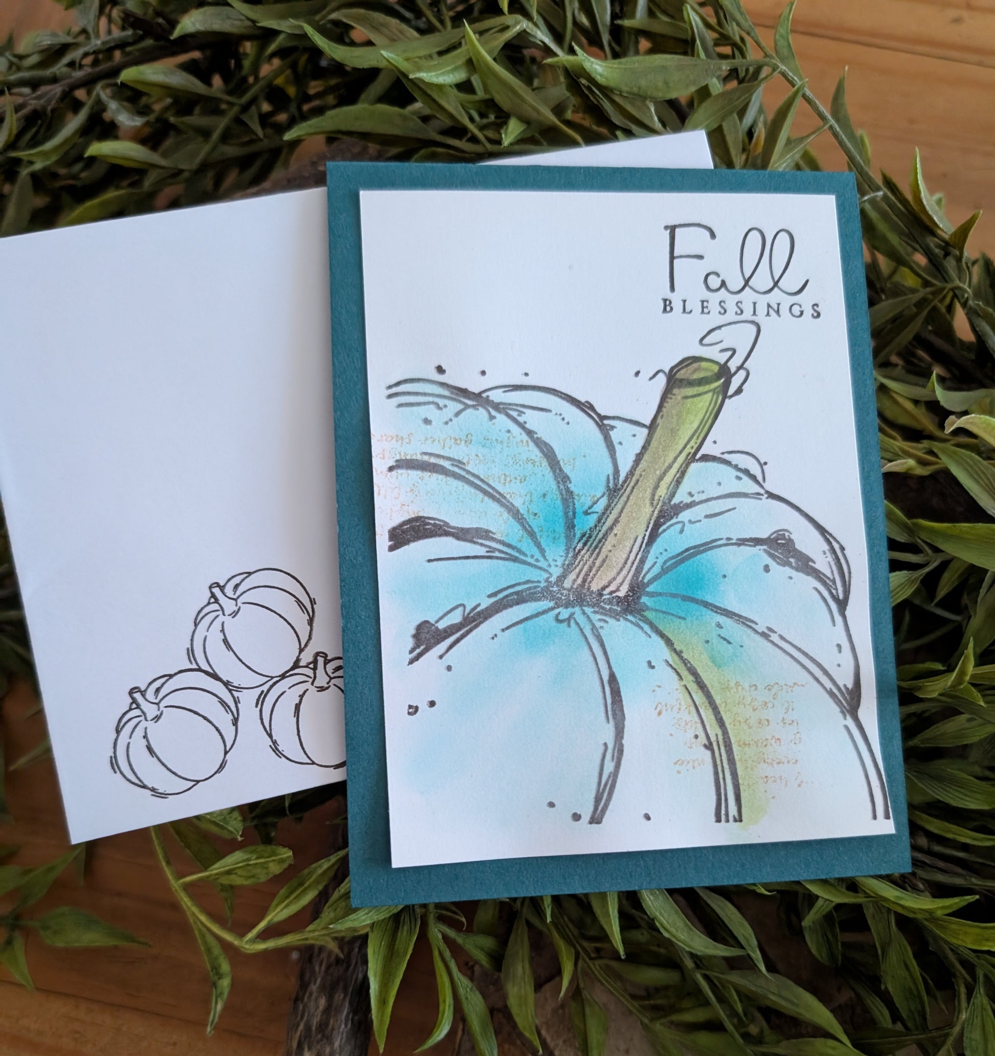 This unique fall card will help you spread handmade love and joy. Each card is individually stamped, water colored and inked using mixed-media techniques. No two will be exactly alike.